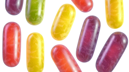Mike and Ike Sour-licious candy collection in vibrant 3D digital art, isolated on transparent background. Top view of colorful, fruity flavors assortment, perfect for confectionery themes.