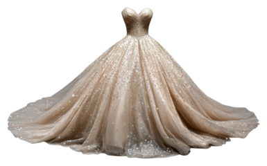 Elegant bridal gown display fashion show dress studio front view isolated on transparent background