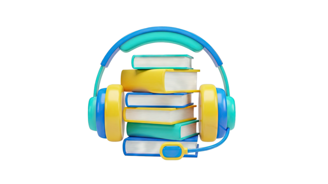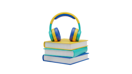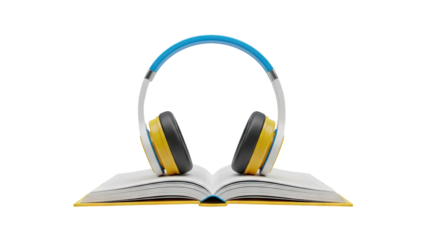 Modern 3D audiobook illustration open book with headphones education and study icon isolated on transparent background PNG