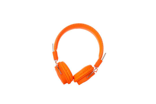 Red headphones on transparent background illustrating music and technology