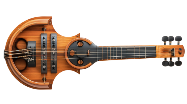 Unique hybrid electronic-acoustic instrument background isolated on a Transparent background, PNG file.