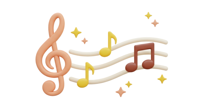 3D Treble Clef and Musical Notes on Staves isolated on a transparent background staff melody