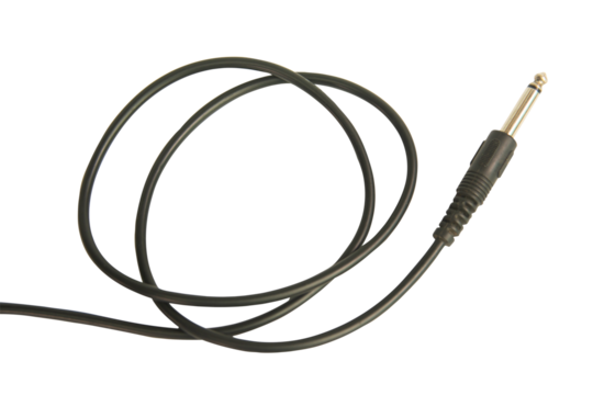 Guitar audio jack with black cable isolated on white background with clipping path.