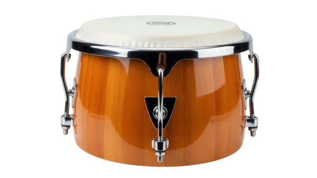Isolated drum set for studio audio recordings, instrument with white head and wooden body