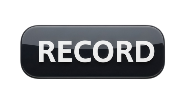 Black record button PNG isolated on transparent background, glossy interface element for audio recording and playback