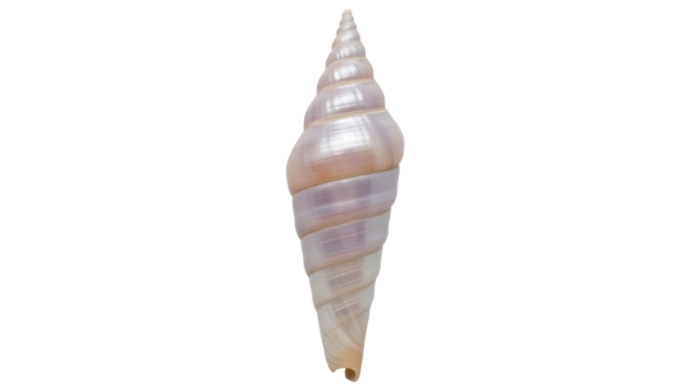 Elegant auger shell isolated PNG on transparent background, slender spiral seashell with subtle iridescent colors for marine life and design projects