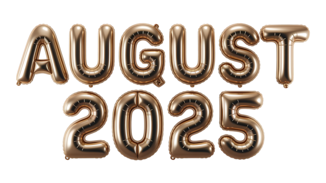August 2025 Golden Balloon 3D Design Isolated on Transparent Background, Balloon 3D Golden Text August 2025