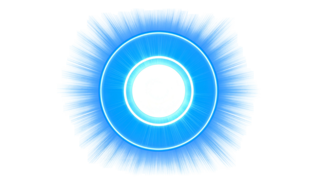 Vibrant abstract blue light glow with a blurred starburst effect on white