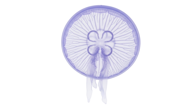 Isolated translucent moon jellyfish with visible internal anatomy against blank canvas