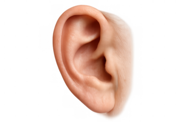 Human ear external anatomy for hearing and perception, isolated with transparent background