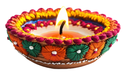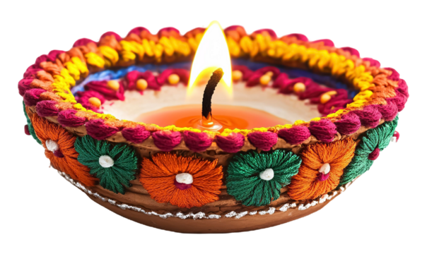 Silk Thread Diya Decoration for Diwali and Festive Lighting - Isolated on White Background