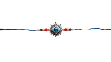 Intricate rakhi isolated on transparent background, a symbol of love and protection between siblings, featuring delicate beads, threads, and a central design