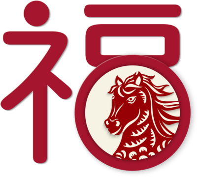 Chinese text word paper sculpture design with animal horse. Chinese word translation Bless