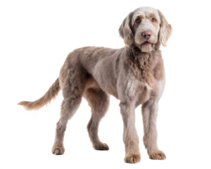 A Shepadoodle is a mixed-breed dog that is a cross between a German Shepherd and a Standard Poodle.