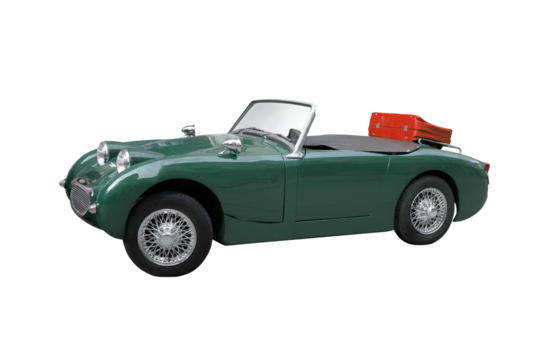 Isolated British Racing Green Convertible Car, a Classic Austin Healey, Elegant, and Detailed