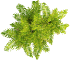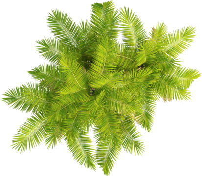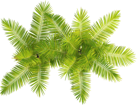 Laccospadix australasica tree plan, top view, cutout, transparent background, isolate, Vibrant green palm fronds from above create a tropical canopy design element