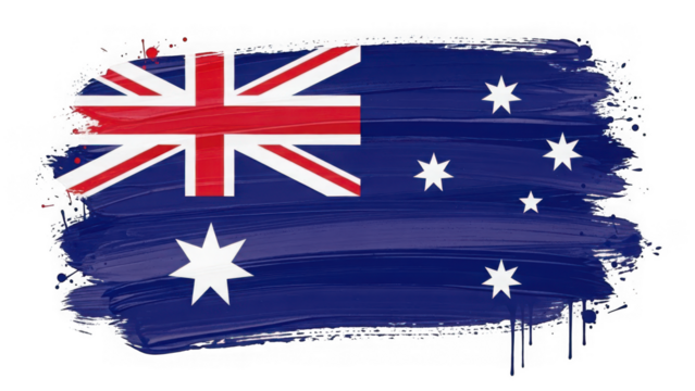 Australian flag with blue brush strokes and paint splatters
