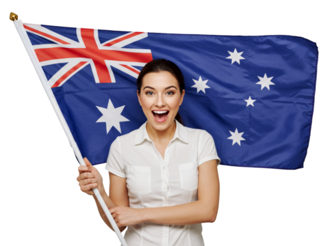 Australian Flag Waving in the Wind on a White Background