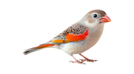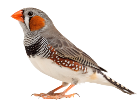 Colorful Australian Zebra Finch Perched on Transparent Background