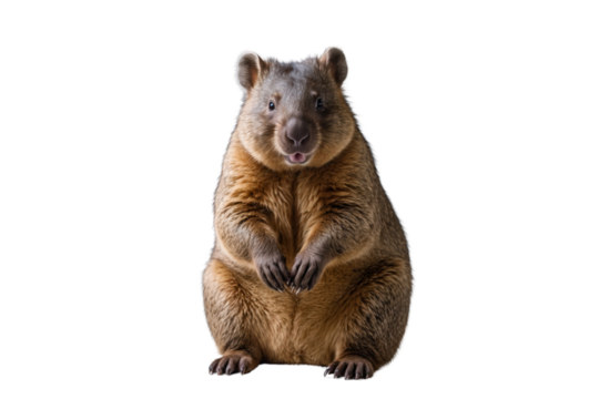 Isolated wallaby standing on two legs looking forward, a native marsupial from Australia