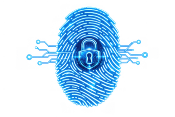 Fingerprint with secure padlock icon, biometric cybersecurity concept, digital identity and data protection technology