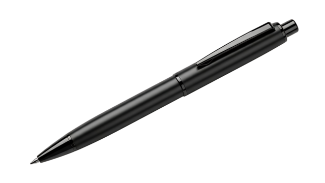 Black pen on transparent background, sleek writing instrument