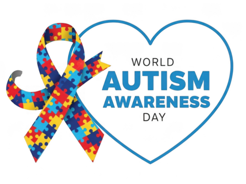 World autism awareness day puzzle ribbon in heart shape isolated on transparent background
