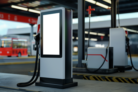 Self-service gas station with blank screen Mockup
