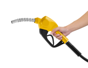 Hands holding Fuel yellow nozzle, transparent background