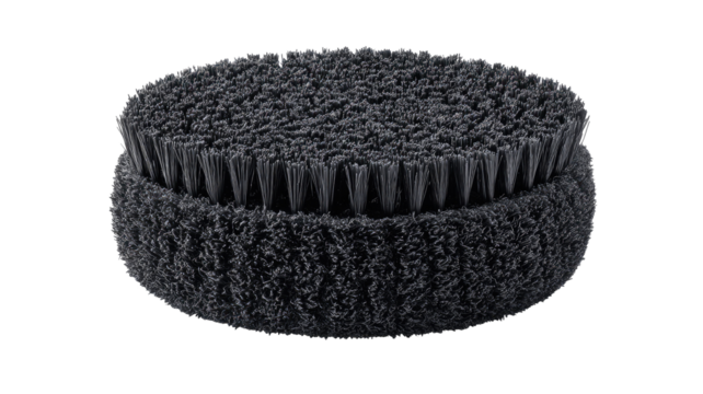 Hand Holding Round Two-tone Cleaning Sponge Against White Background