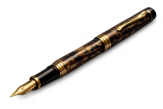 Luxurious black fountain pen with a golden nib and accents, representing writing, education, and business concepts