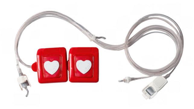 Red robotic arm with black claw isolated on transparent background
