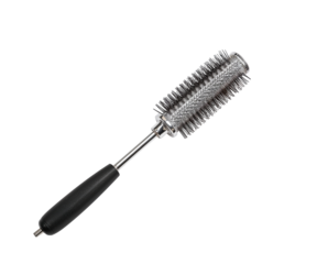 Silver robotic lawn mower with black accents and red top detail, cutout, PNG isolated on white or transparent background