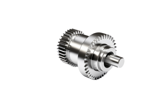 3D render of a metallic gear assembly, showcasing intricate details and precision engineering. background removed