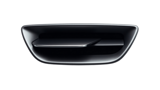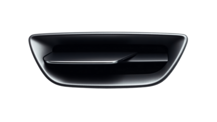 A black car with a black steering wheel and a black dashboard. PNG on transparent background