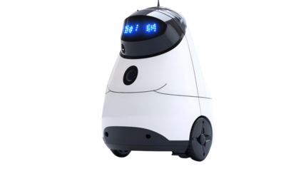 A high-tech security robot patrolling an area, using AI to detect threats,Transparent background, PNG file