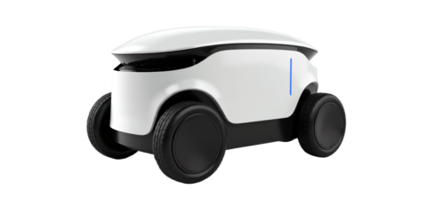 Autonomous delivery robot on wheels isolated on an empty plain background