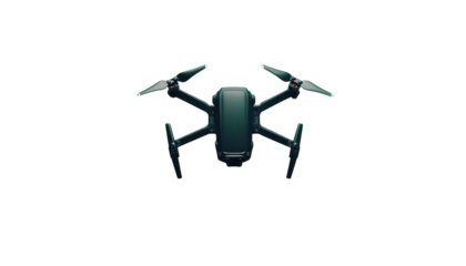 A Glimpse of the Future: A Black and Silver Drone Hovering in Mid-Air on a Clear PNG or White Background.