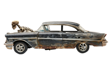 Terrifying grey alien conducting dark extraterrestrial autopsy isolated on transparent background