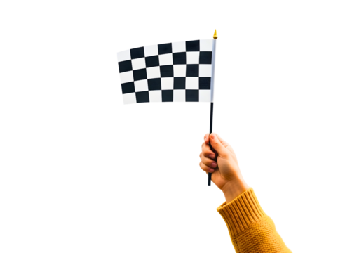 Hand holding a checkered flag