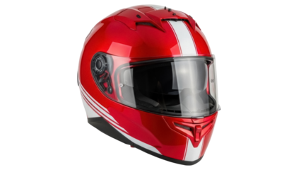Isolated red motorcycle helmet with a clear face shield for motorsport and protection