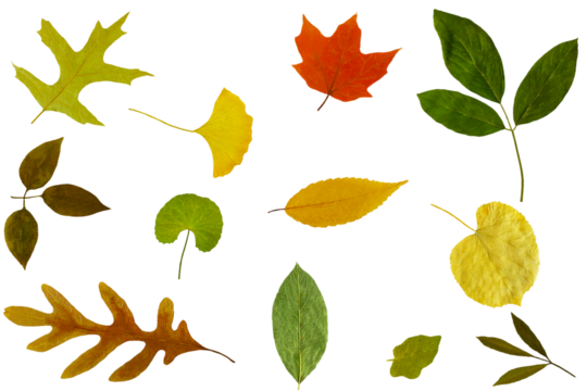 colorful nature fall or autumn leaves texture,nature,seasonal,art,craft,related concept background,cutout in transparent background,png format