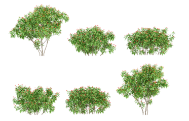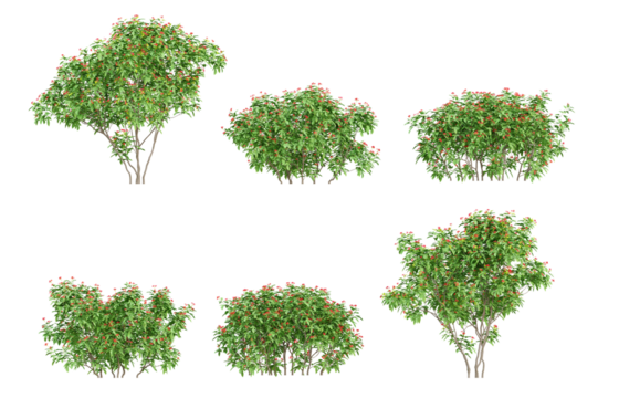 Set of 3d plants Jatropha integerrima in different view on transparent background, png illustration