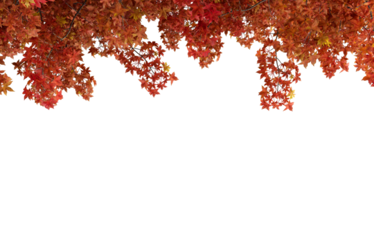 Autumnal corner decoration with pumpkins and fall leaves, isolated on transparent background