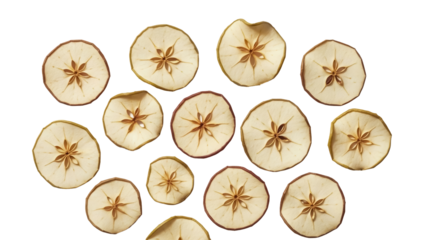 Dried apple slices PNG isolated on transparent background, healthy snack food with natural star pattern for autumn and winter holidays