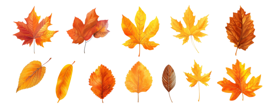 Realistic illustration of falling autumn chestnut leaves on a transparent background, perfect for autumn-themed designs