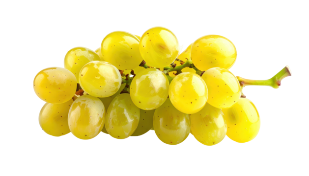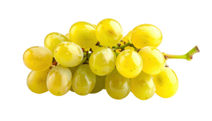Close-up of a bunch of golden-yellow, translucent grapes against a black background