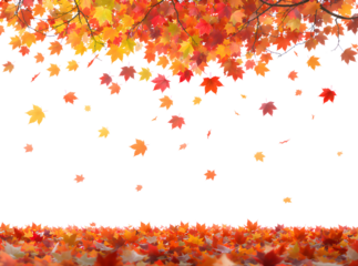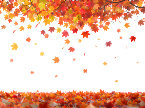 Falling autumn leaves frame a white background. Perfect for seasonal designs and autumnal themes