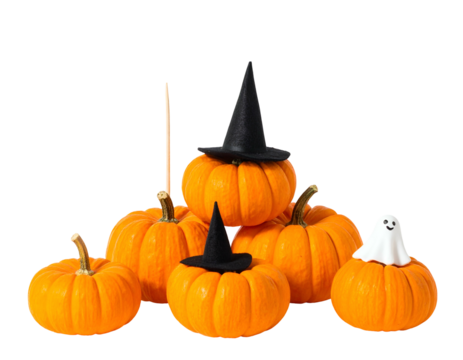 Cartoon-style Halloween tombstones, pumpkin, candles, and a black crow set for spooky decorations and holiday themes
