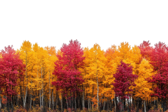 Trees Collection in Autumn – Maple (Acer) and Birch (Betula) Species with Red and Yellow Foliage, Transparent Background, High-Quality Isolated Seasonal Tree Pack